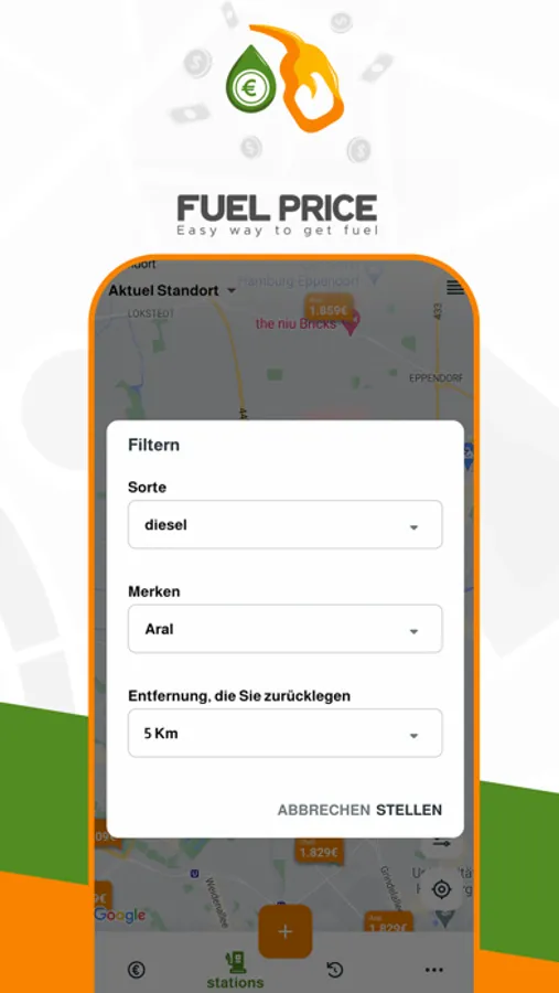 Fuel prices often differ between gas stations by up to 20 cents. Even within a radius of a few kilometers, the price difference can be very high.