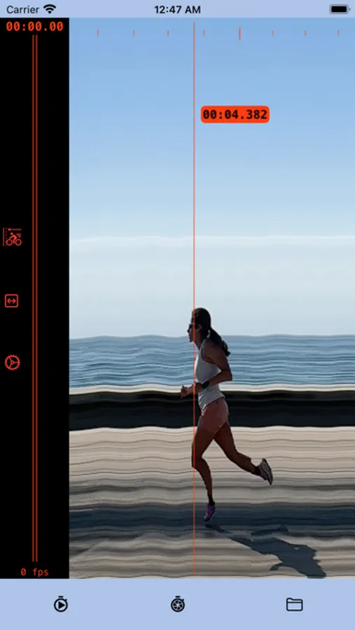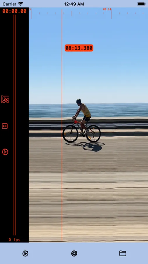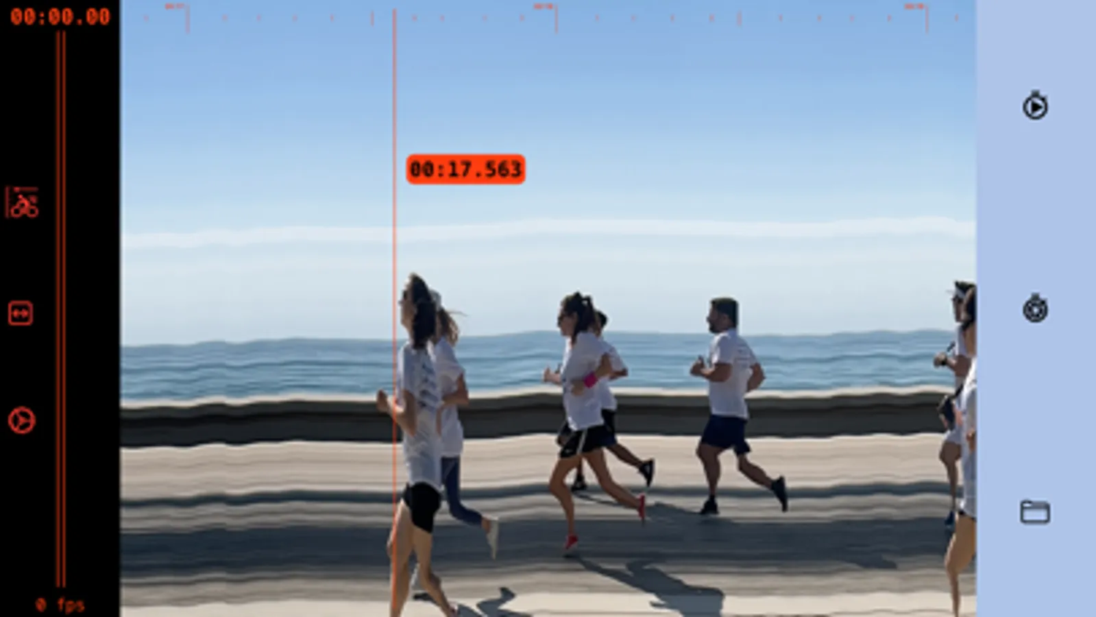 5. Find the frame when the winner crosses the finish line. The timestamp at the cursor line shows the precise result.