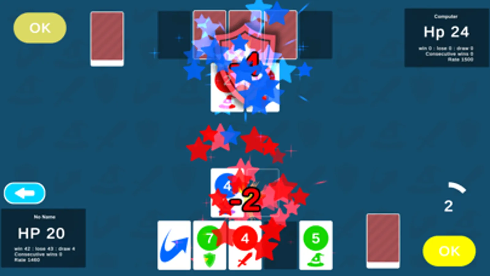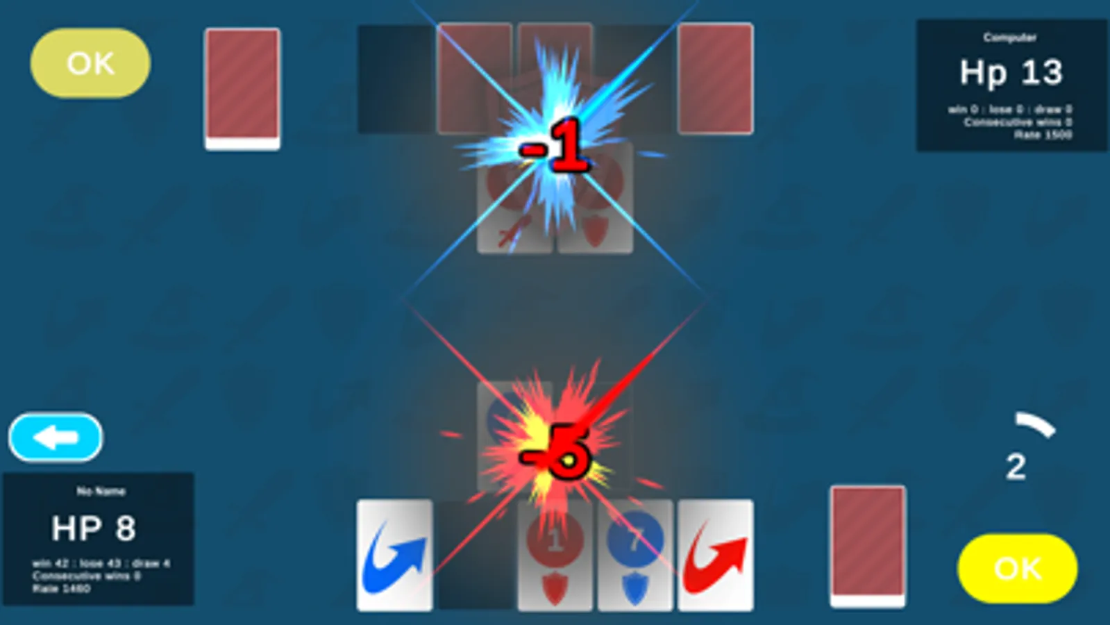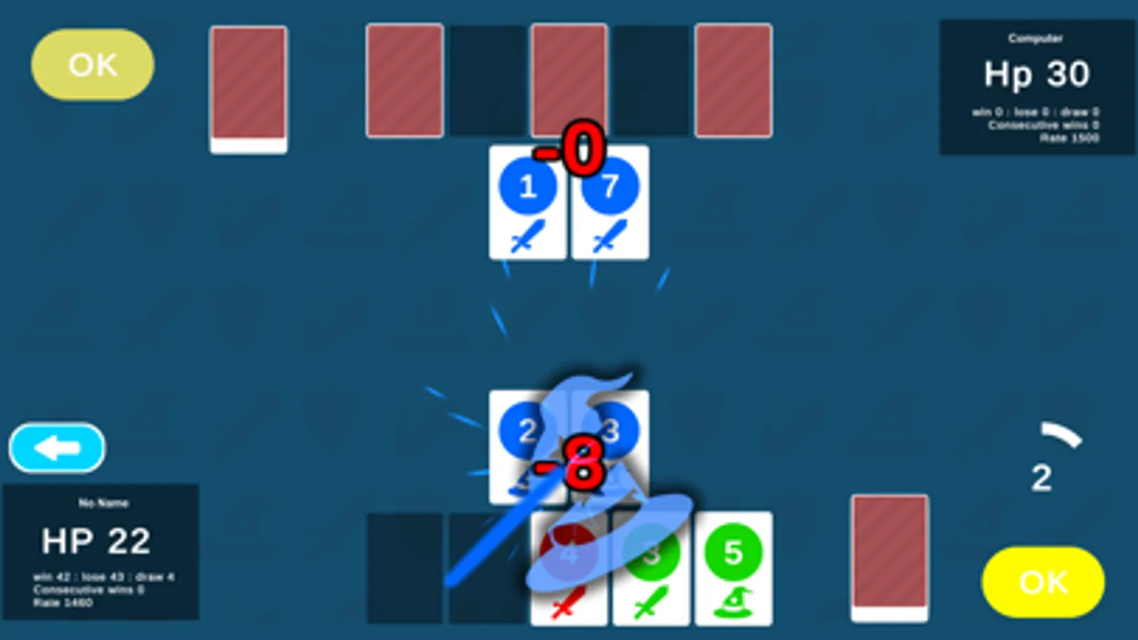 The first player to reduce the opponent's HP to zero wins. It is a game that can be played easily.