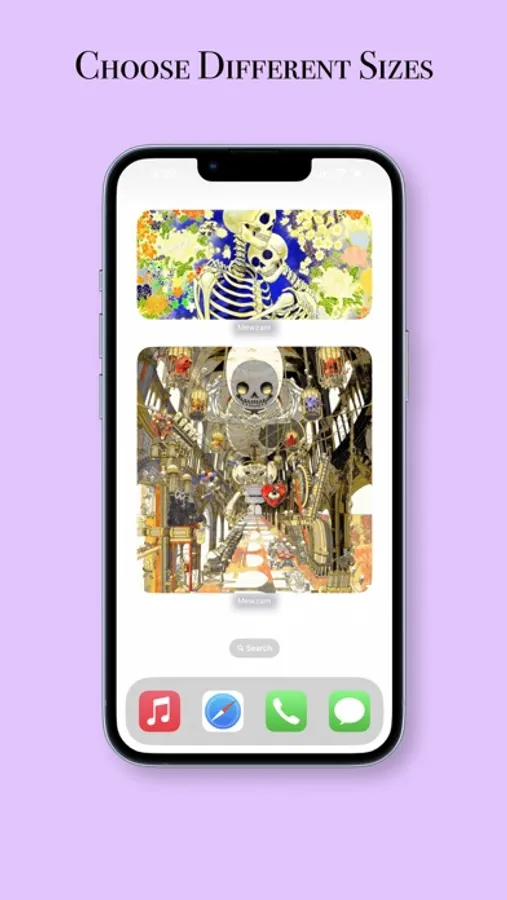 Click Mewzam and select one of the three sizes. Long press the widget and hit 'Edit Widget', now you can select the artist you want to display art from. You can now either display art from the artist, or toggle 'show newest art' to have the widget automatically update to always show the latest art that the artist posted.