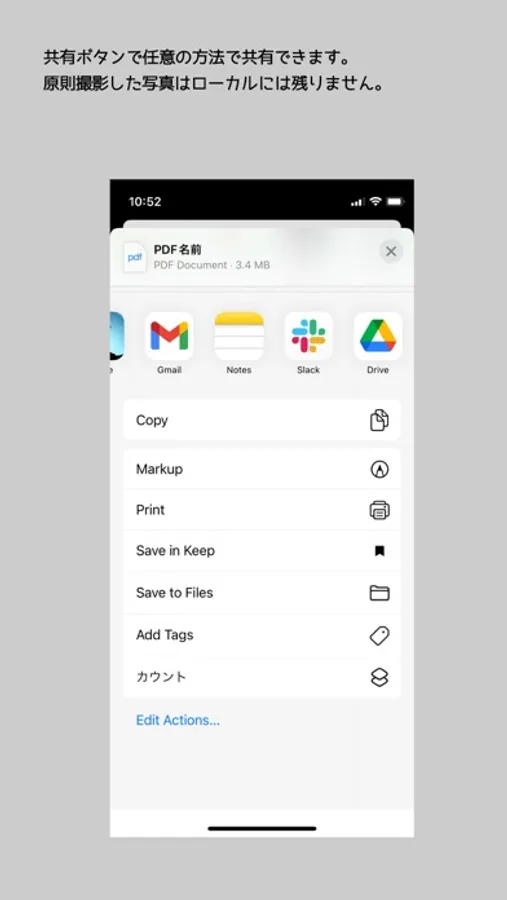 撮影した写真はPDF形式に変換します。