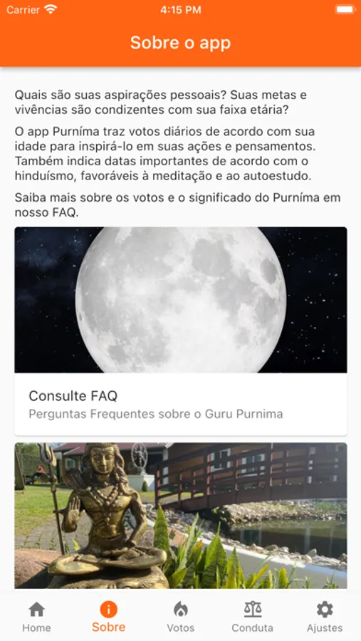 Este aplicativo mostra as datas auspiciosas para o hinduísmo, favoráveis para meditação e autoestudo, incluindo as datas de lua cheia de Gurupurnima.