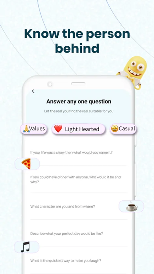 1. Create your profile by selecting from 1000's quirky avatars and fun names