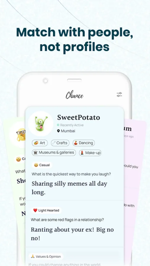 You're more than just a photo. You have stories to tell, passions to share, and things to talk about that are more interesting than just the weather. Because you deserve what everyone deserves, a real Chance.