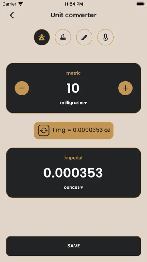 Converter allows you to convert ingredients from metric to imperial unit system and vice versa, and save them on the device for easier access.