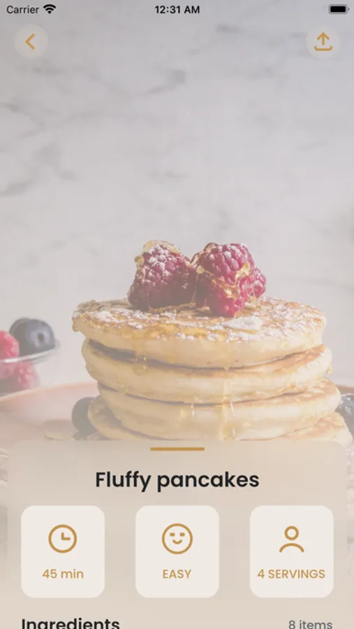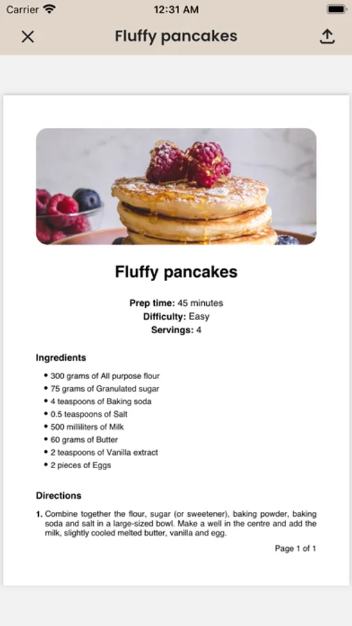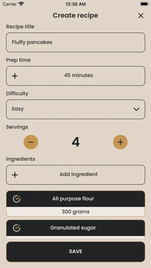 Create recipes using saved ingredients or add your own, save recipes on the device and generate recipe PDF if you want to share your recipe with anyone or just print it out.