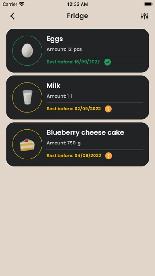 In fridge you can add your products and their expiration dates and get notified when fridge contains products that are expiring soon or already expired.