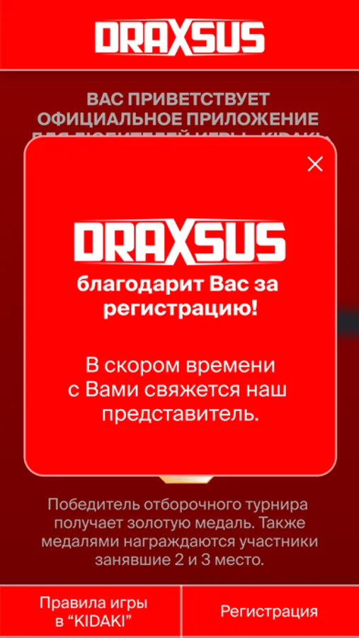 Мобильное приложение DRAXSUS создано для фанатов студии DRAXSUS и популярное игры KIDAKI. В приложении вы можете зарегистрироваться и принять участие в турнире KIDAKI. Также просмотреть все актуальные призы доступные на сегодня. В дальнейшем наше приложение будет улучшаться и совершенствоваться.