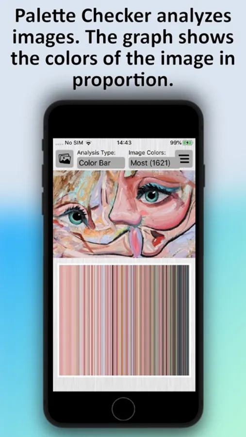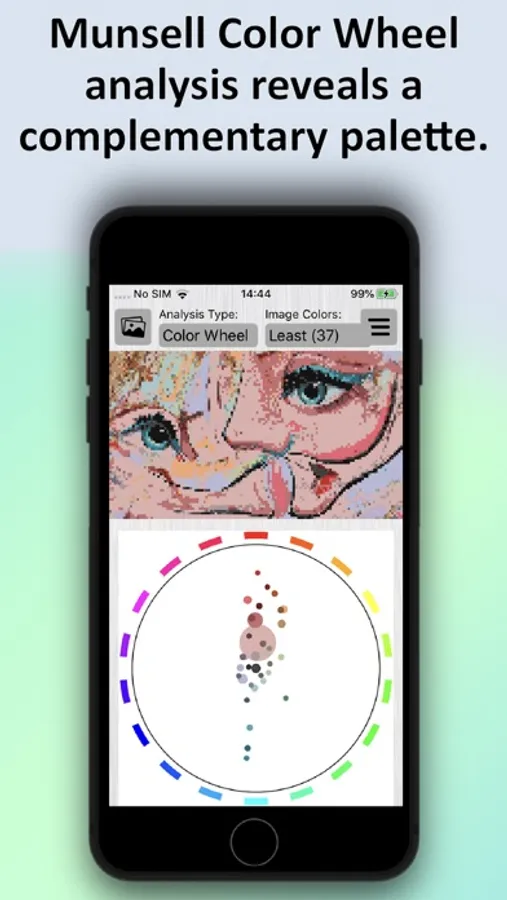 Palette Checker allows you to load an image and analyze it by color, including a color plot over a Munsell color wheel, value (grayscale), saturation (how vivid a color is), 3-values (light, middle, dark) and Notan (dark/light). Designed for artists, the image can be any photograph, allowing you to analyze your artwork and your reference photos. If you’ve ever wondered what an image would look like if you were able to collect the colors together into groups, then this is the app for you.