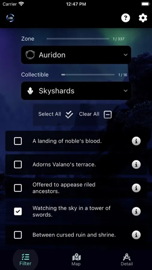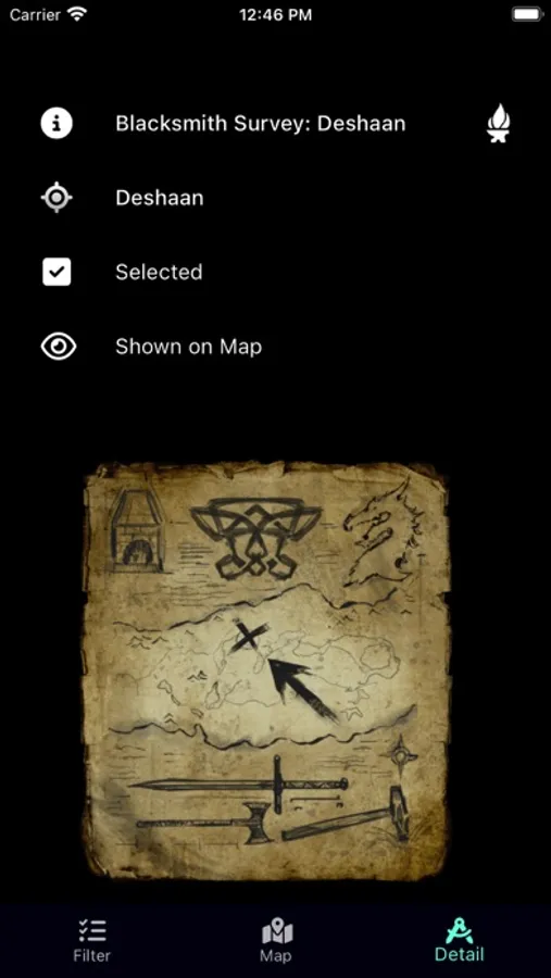 Items can be located on their respective zone maps and ticked off as they are completed. Treasure map and survey detail can be viewed for each item as you hunt to save you time opening and closing your inventory. You can also find missing Mages Guild books and Skyshards while completing surveys.