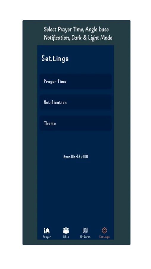 This application calculates location based azan time. With the option to adjust azan time as Fqih, Angle Based, 1/7 rule.