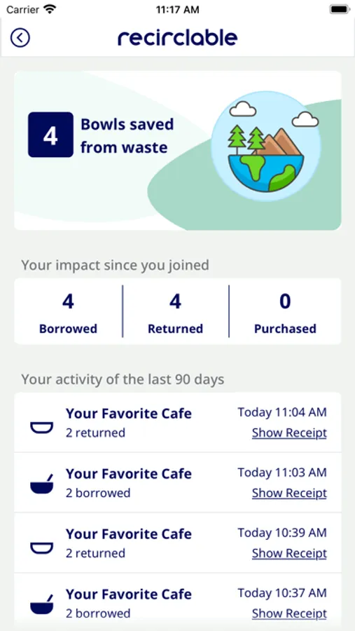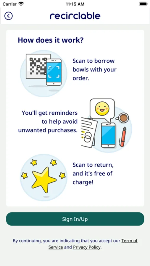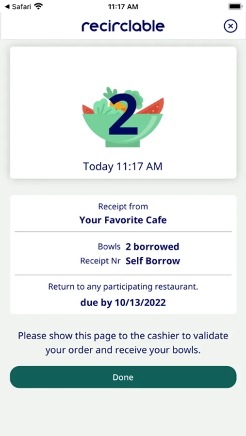 2. Signup with Recirclable. It’s free! We collect your payment details but only charge if you don't return containers.