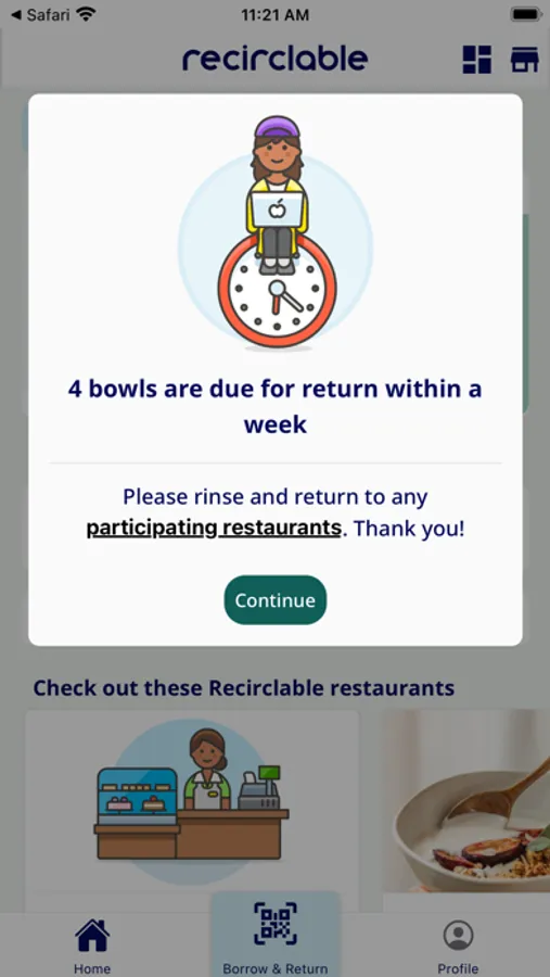 4. Scan the Recirclable QR code and confirm the number of bowls borrowed.