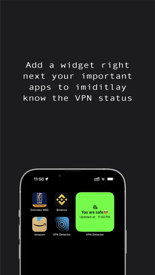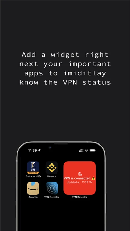 Use this app and add the widgets next to you important apps and it tells you that whether you are connected to VPN or not.