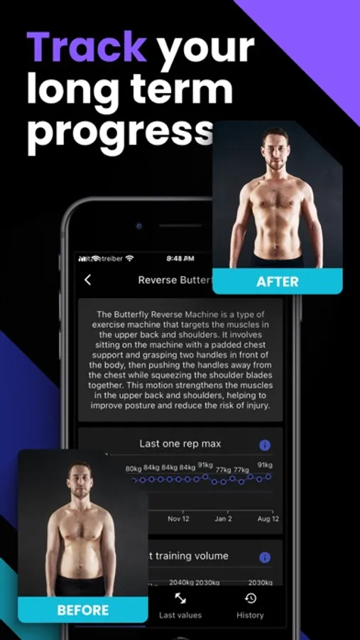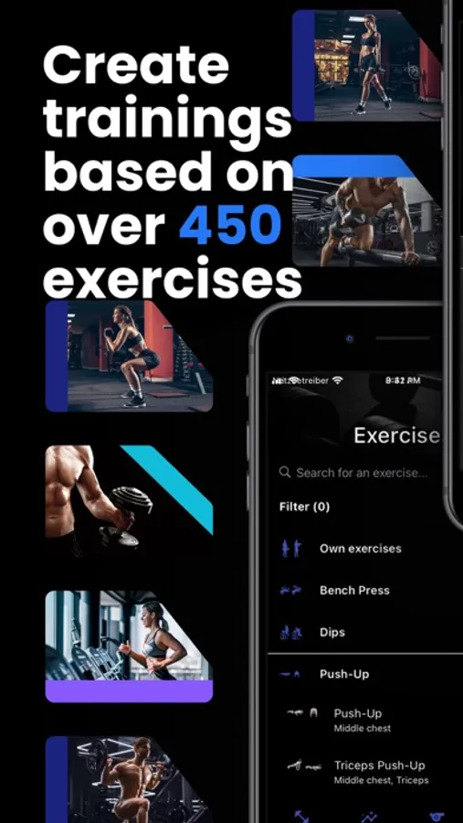 Choose between the pre-created workout plans or create your own workout plan. With over 400 exercises that can be filtered by numerous criteria such as muscles and equipment used, you have a huge selection to choose from.