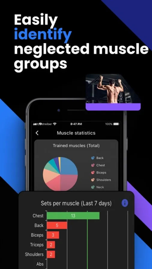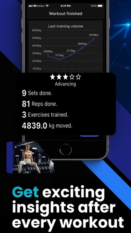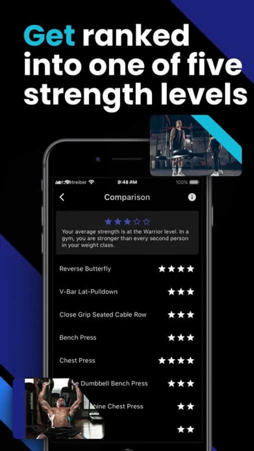After your workout, you can view statistics that visualize your workout and progress. The app's rating system also allows you to rank your strength level for each exercise.