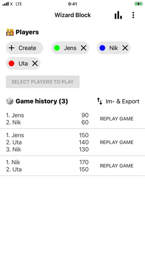 Of each player Wizard Keeper will remember the history. Using Wizard Keeper you can review every game.