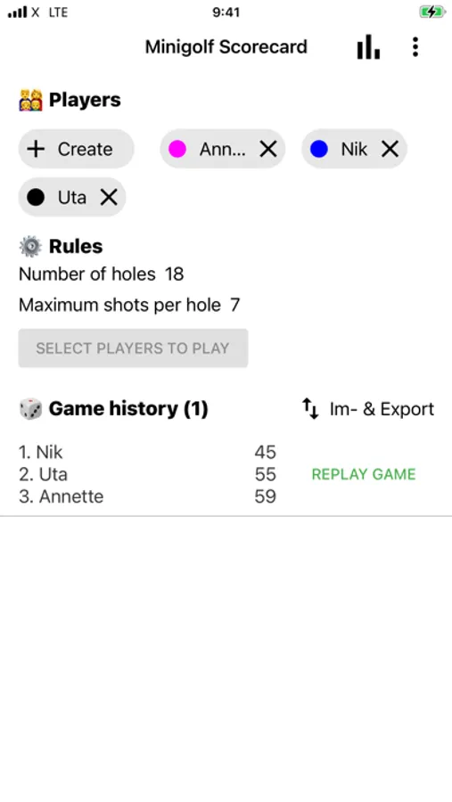 Each Minigolf Score is saved in your history. You can even get Mini Golf Score statistics.