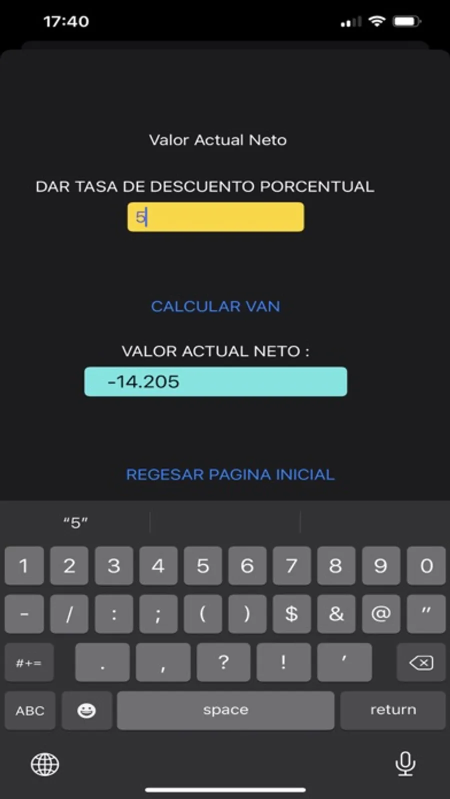 Esta App calcula la Tasa interna de Retorno (Tir) de un flujo de efectivo que se da en periodos de tiempo uniformemente espaciados, tal vez años, meses u otra unidad de tiempo. Si el periodo es un año, entonces la Tir será obtenida en tanto por ciento anual. También calcula el Valor Actual Neto (VAN) del mismo flujo de efectivo, para lo que es necesario proporcionar una tasa porcentual en la misma unidad de tiempo, ya sea anual mensual, etc, la que se designa como tasa de descuento, y este VAN será el valor presente de la suma del flujo de efectivo.