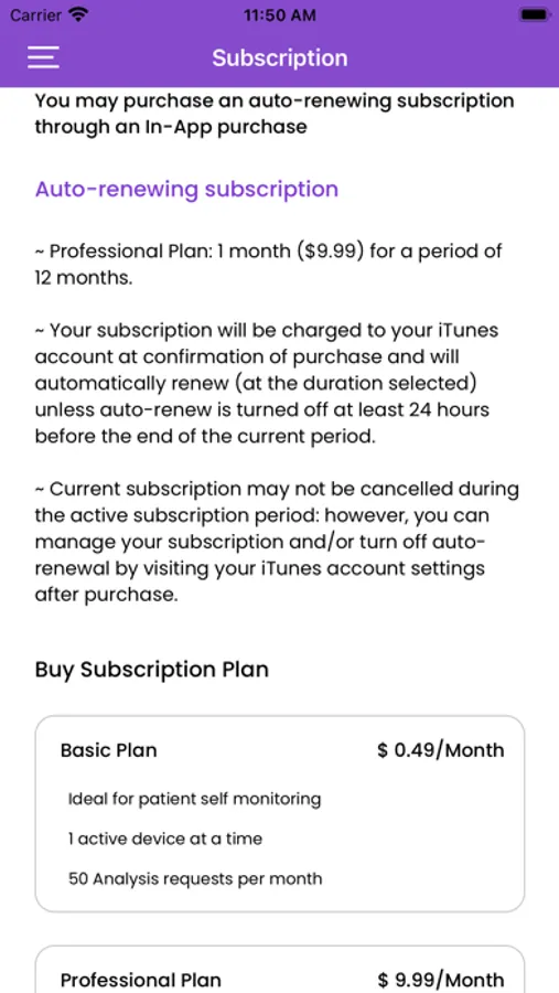 You may purchase an auto-renewing subscription through an In-App Purchase.
