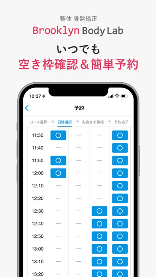 アプリを通してブルックリン ボディラボの新着情報やお得な情報を受け取ることができます。また、いつでもお手元のスマートフォンから、メニューやご希望のお時間帯のチェック・ご予約などが可能です。アプリをインストールしていただくことによりブルックリン ボディラボを、より便利に身近にご利用していただけます。