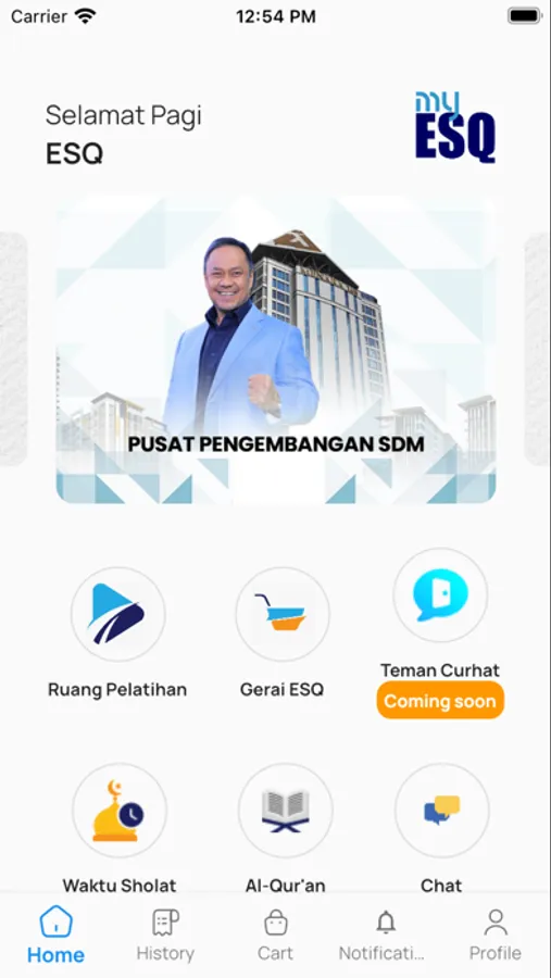 MyESQ merupakan aplikasi Super App yang disediakan oleh ESQ untuk memudahkan para Alumni untuk melakukan pembelian dan menikmati fitur fitur yang ada di ESQ