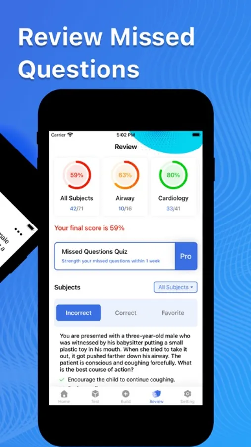 Track all your practice exam history, keep your correct, incorrect and favorite questions on the same page. This intuitive layout will help you analyze your study pattern in a fast way