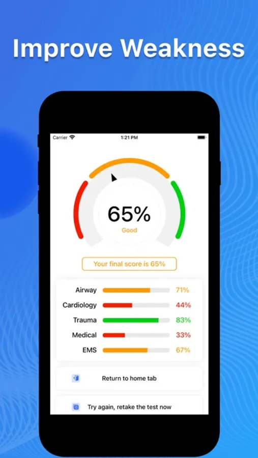 Our test includes scoring and answer explanations. Our application will let you practice in your weak study area after you take the practice tests. It will help you strengthen your weakest points in a quick way