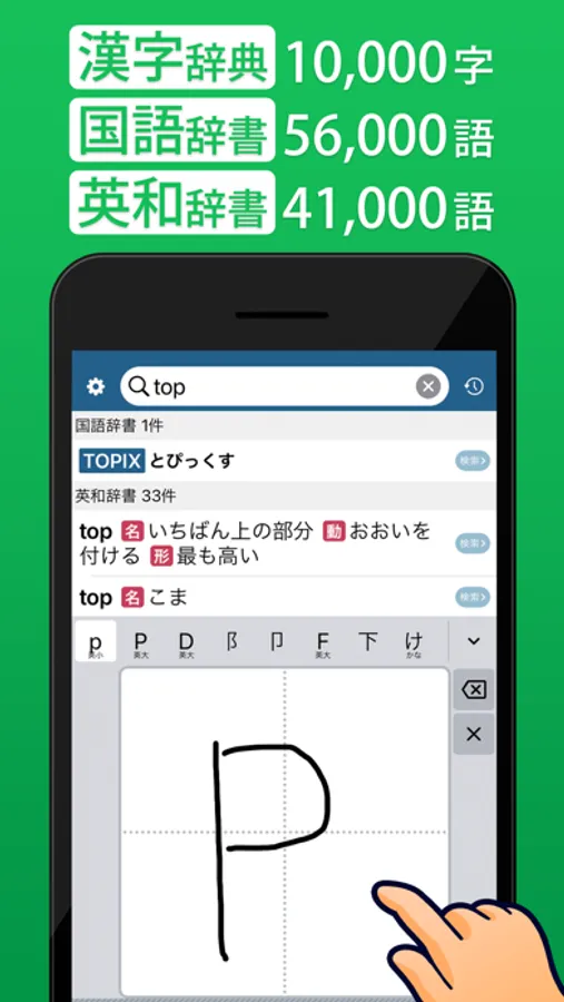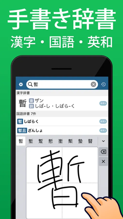 手書き漢字辞書としてはもちろん、国語辞典・英和辞典にも使える便利な無料辞書アプリです。