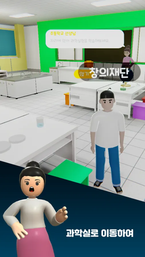 - 터치 : 비커나 실험기구들을 터치하여 다음 단계로 넘어갈 수 있습니다.
