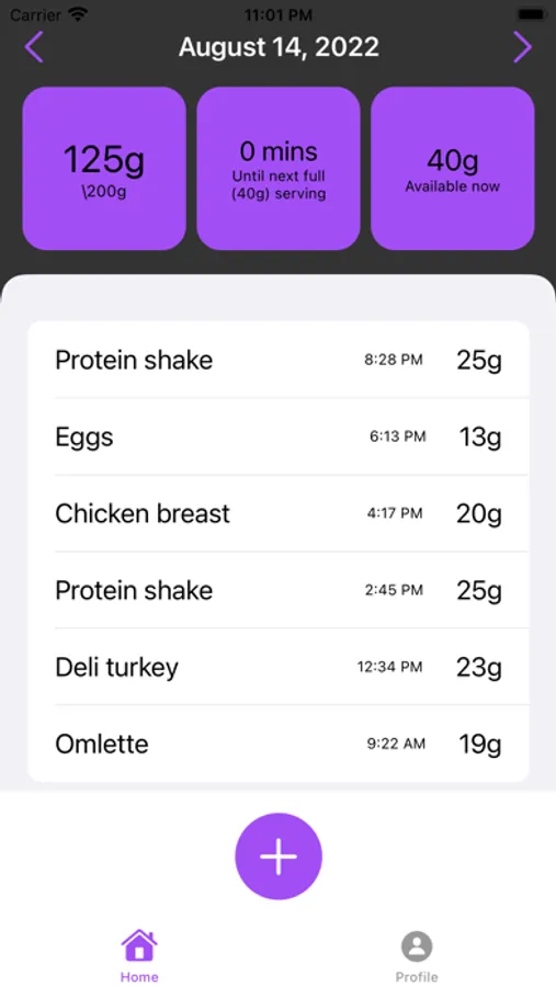 Amino Amigo is designed for athletes who need to time their protein intake, and record complete proteins separately from regular macronutrient tracking. By specifying a serving size, time between servings, and number of servings per day, Amino Amigo will automatically track when you need to consume protein to most efficiently complete your servings and reach your daily protein goal. It does this by making a behind the scenes distinction between protein consumed and protein metabolized, allowing only a single serving size worth of protein to be metabolized during a "time between servings" window.