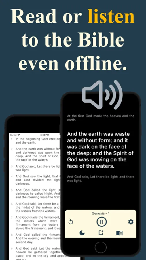 • Increase/Decrease the text size in reading mode and alter the volume, pitch, and speech rate while listening to the bible.