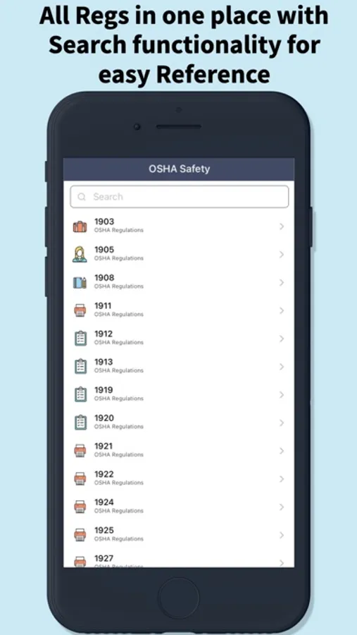 OSHA Safety Regulations app includes the OSHA regulations including: