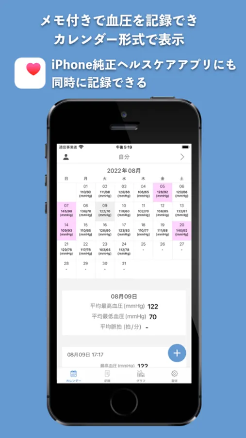 - 純正ヘルスケアアプリにも同時に血圧を記録