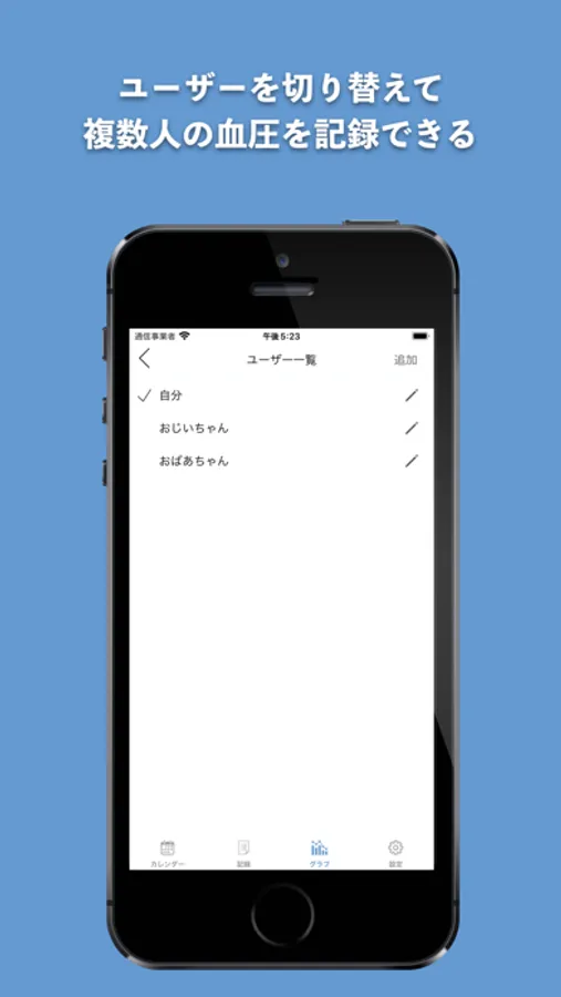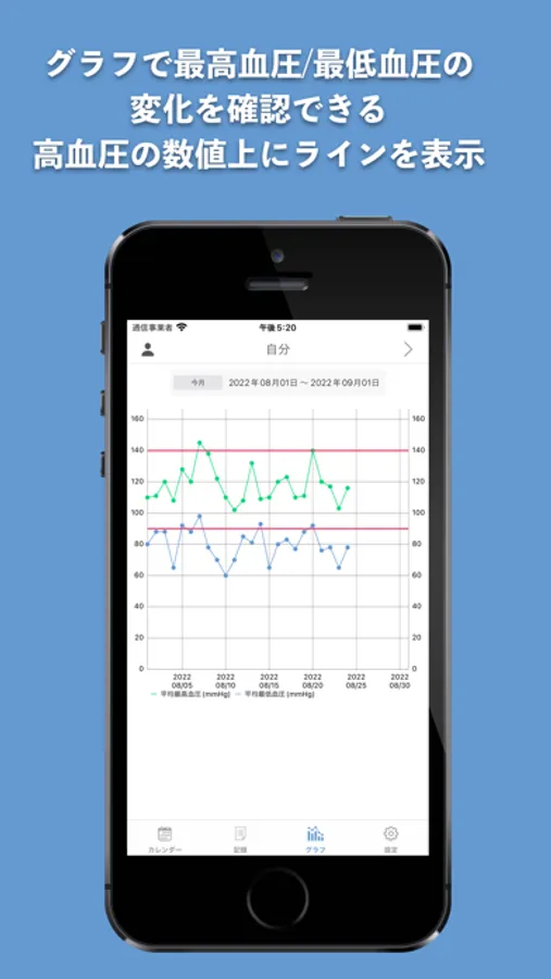 このアプリは、血圧記録してカレンダーで表示できるアプリです。