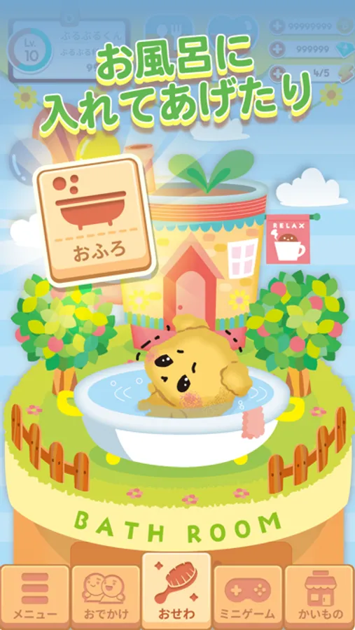 ごはんをあげたり、お風呂に入れてあげたりして、ぶるぶるを上手に育ててあげよう!