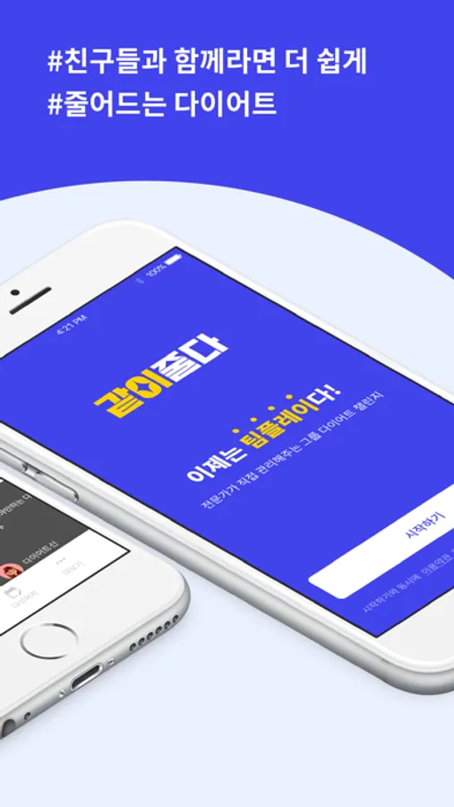 같이줄다는 스마트폰으로 언제 어디서나 사람들과 함께 다이어트를 할 수 있어요. 혼자 할 때보다 조금 더 쉽고 재밌게, 그리고 전문가와 함께 더 체계적으로 체중을 감량하고 건강한 습관을 이뤄보세요.