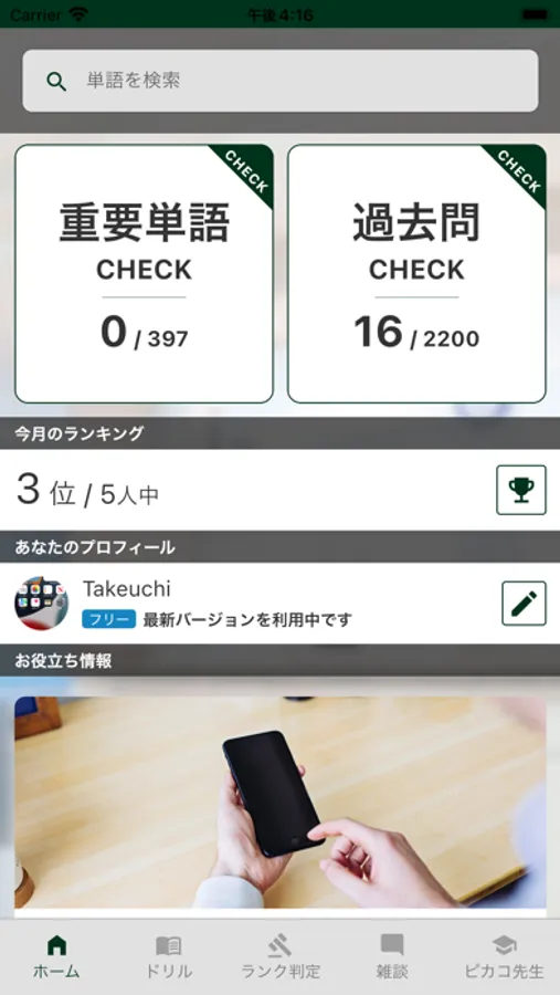 ・国家試験の頻出度に応じて単語をランク付け。効率的な学習に欠かせない「単語チェック」機能
