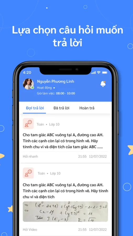 - Gửi đáp án cho học sinh trên ứng dụng gia sư Colearn