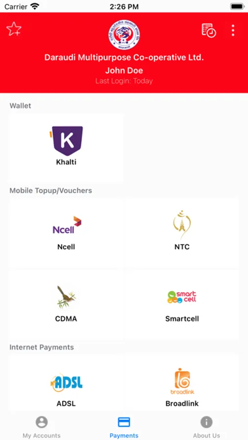 Daraudi Smart Banking allows its registered users to access their account in a convenient manner. It is secure and is available 24x7. The user can preview their balance, statements, request cheque book, transfer fund and online payments such as mobile topups and internet payments.