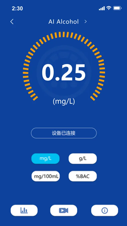 Alcohol is a dedicated APP for intelligent alcohol tester. Users can intuitively view the check results of the alcohol tester through the APP .