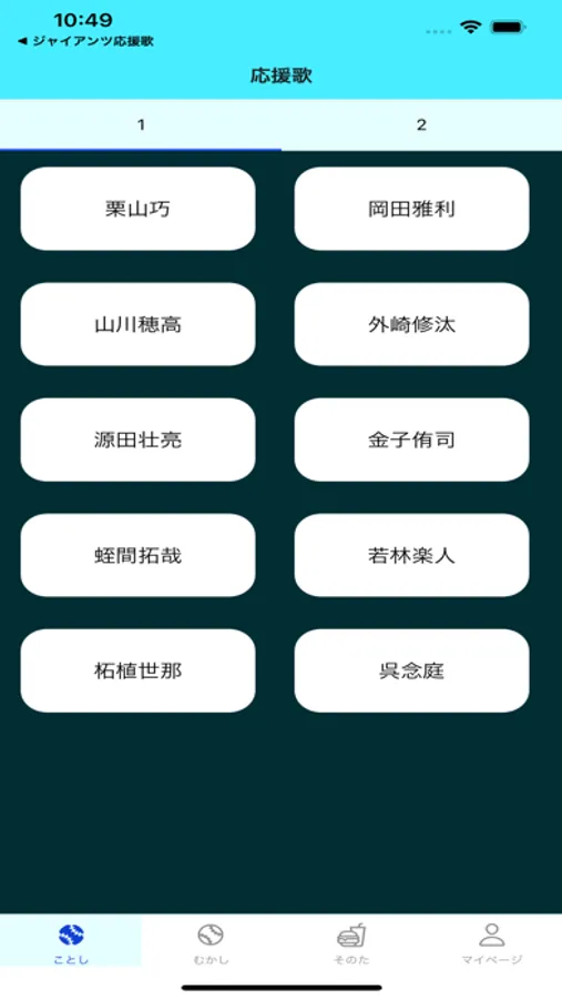 ※選手をタップすると再生が始まるので、あらかじめ音量を調節してからタップしてください。