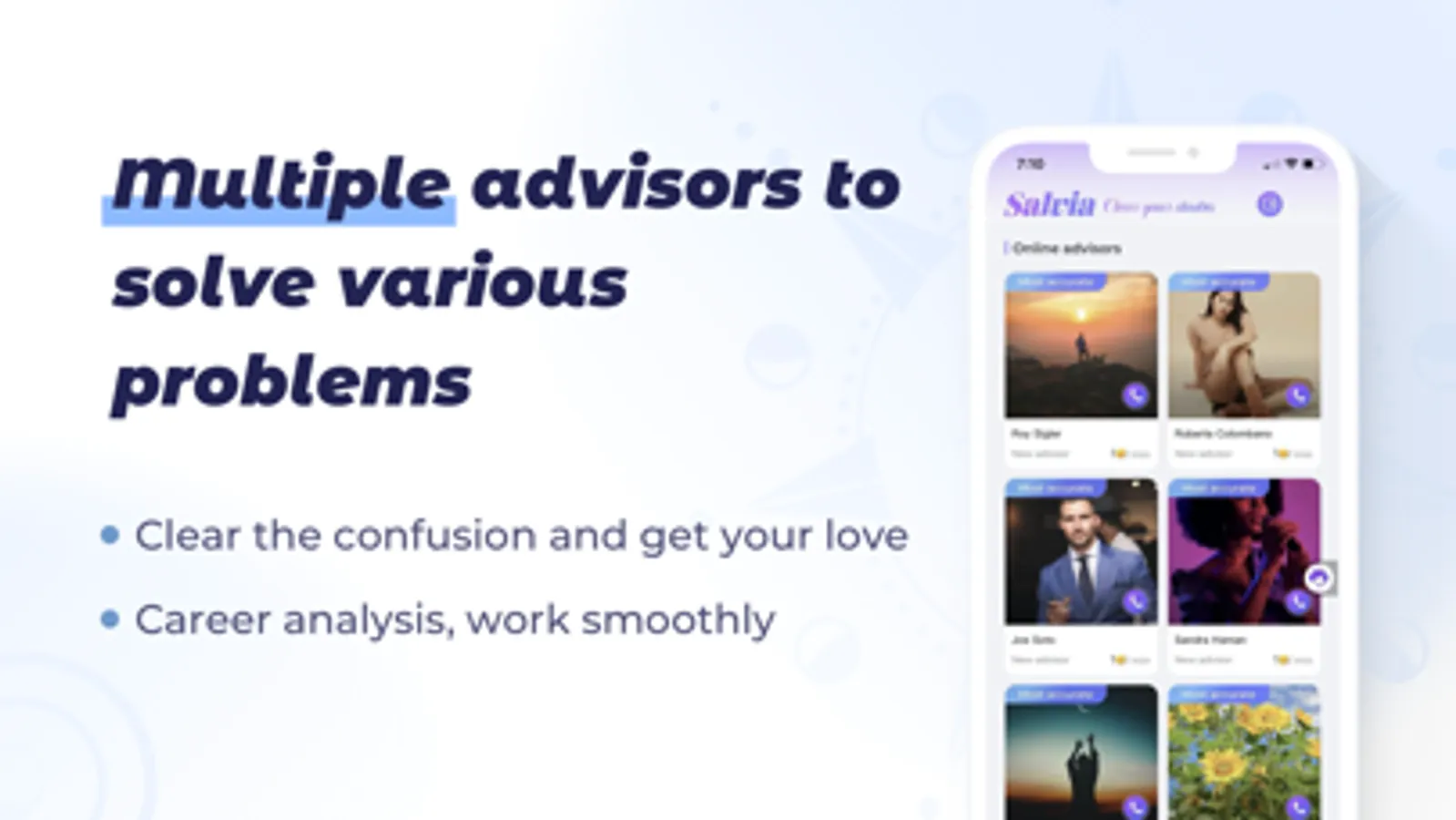 100% Privacy: Salvia not only offers the opportunity to ask anonymously, but also the opportunity to make private calls with advisors, your privacy is fully protected here.