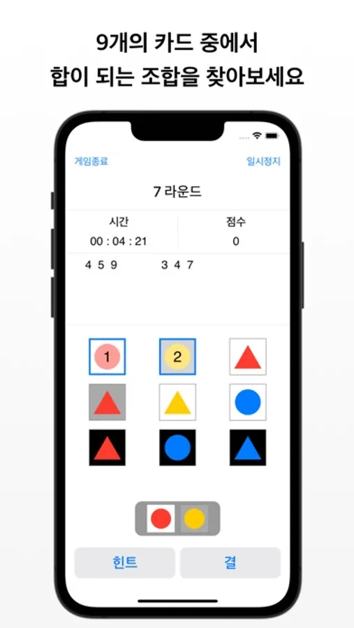 - 힌트를 통해 합이 되는 카드 3개 중 2개를 확인할 수 있어요.