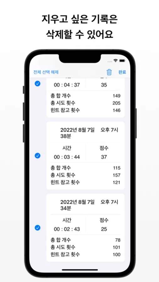 - 게임을 완료하고 기록 메뉴에서 나의 기록을 확인할 수 있어요.