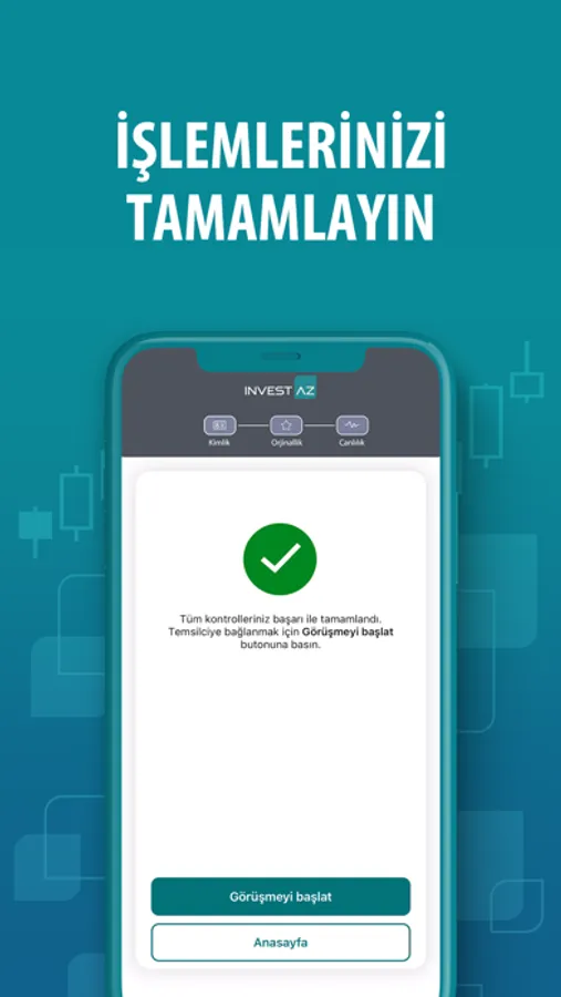 Dilediğiniz yerden InvestAZ Yatırım müşterisi olmak artık çok kolay! Görüntülü görüşme yaparak, hızlı ve kolayca dilediğiniz yerden müşterimiz olabilir, InvestAZ Yatırım dünyasına hemen katılabilirsiniz.