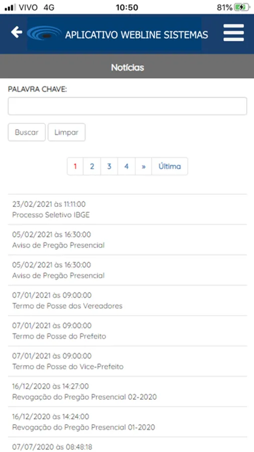 No Aplicativo Webline Sistemas você poderá se comunicar com seus representantes, além de ter acesso as notícias recentes e acompanhar as sessões ao vivo no plenário da Webline Sistemas.