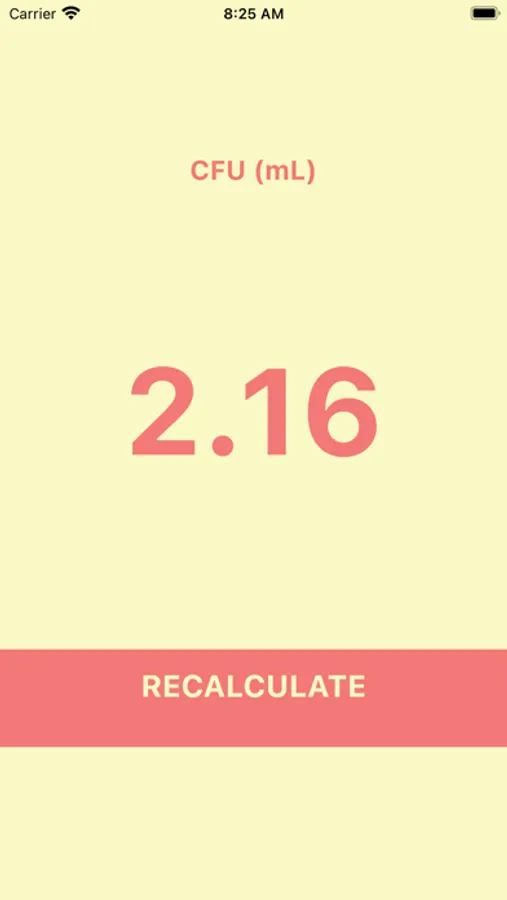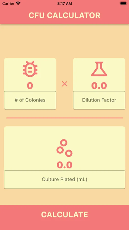 A useful tool to calculate CFU's (Colony Forming Units) per ml. Useful for a microbiology student or working in the lab and you a consistently calculating CFU's.