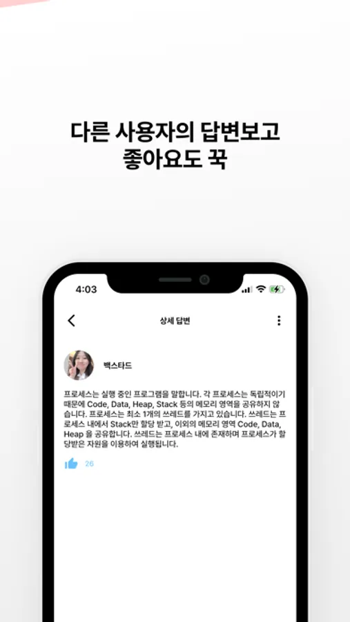 내 답이 맞는걸까? 더 좋은 답변은 없을까? 다른 사용자가 쓴 답변보고 좋아요까지!