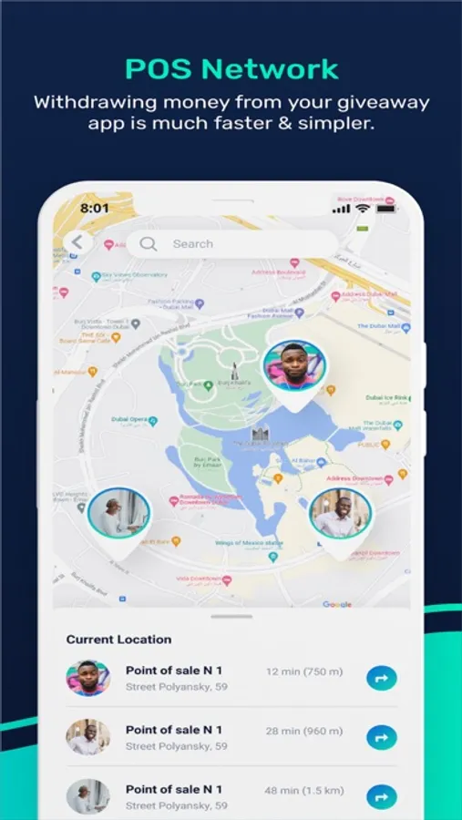 - Withdraw your money in Naira from thousands of connected POS on Giveaway App